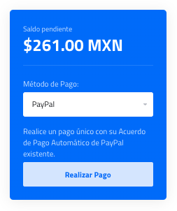 Dar clic en 'Administrar'. En la pantalla siguiente, se debe indicar el Método de Pago->PayPal: