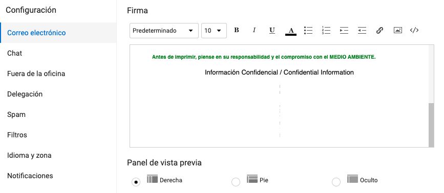 1. Para incluir una firma desde el mismo buzón de correo electrónico en Webmail, dar clic sobre el nombre de usuario: