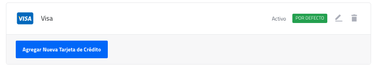 3. Dar clic en Agregar Nueva Tarjeta de Crédito en la pantalla siguiente: