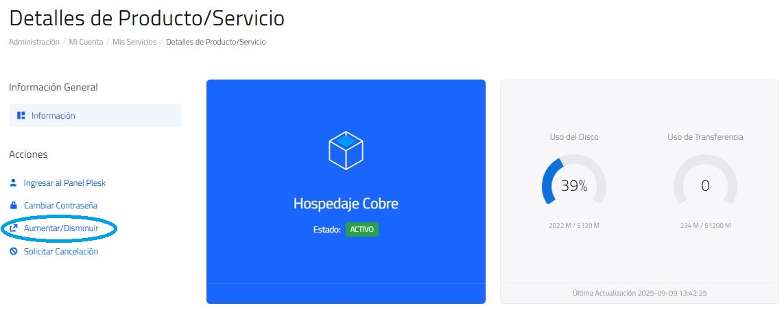 5. Una vez realizado el pago, por favor, envíe el comprobante a info@adaptixnetworks.com para su aplicación lo antes posible. De esta manera se reflejará en la plataforma el cambio del Plan de Hospedaje. Posteriormente, el sistema actualizará al nuevo almacenamiento en la siguiente noche.