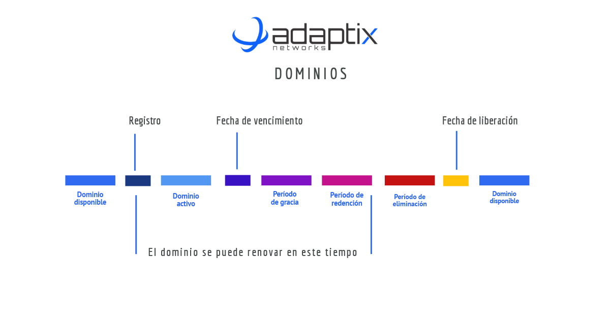 Los dominios tienen un ciclo de vida con ciertos períodos establecidos por la ICANN (entidad encargada de la normativa aplicable a los dominios):