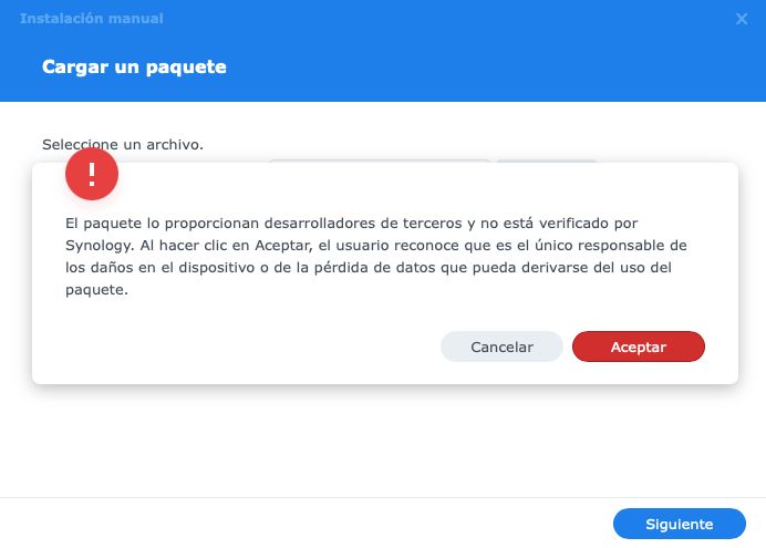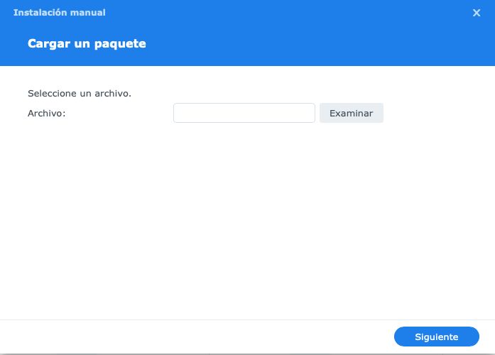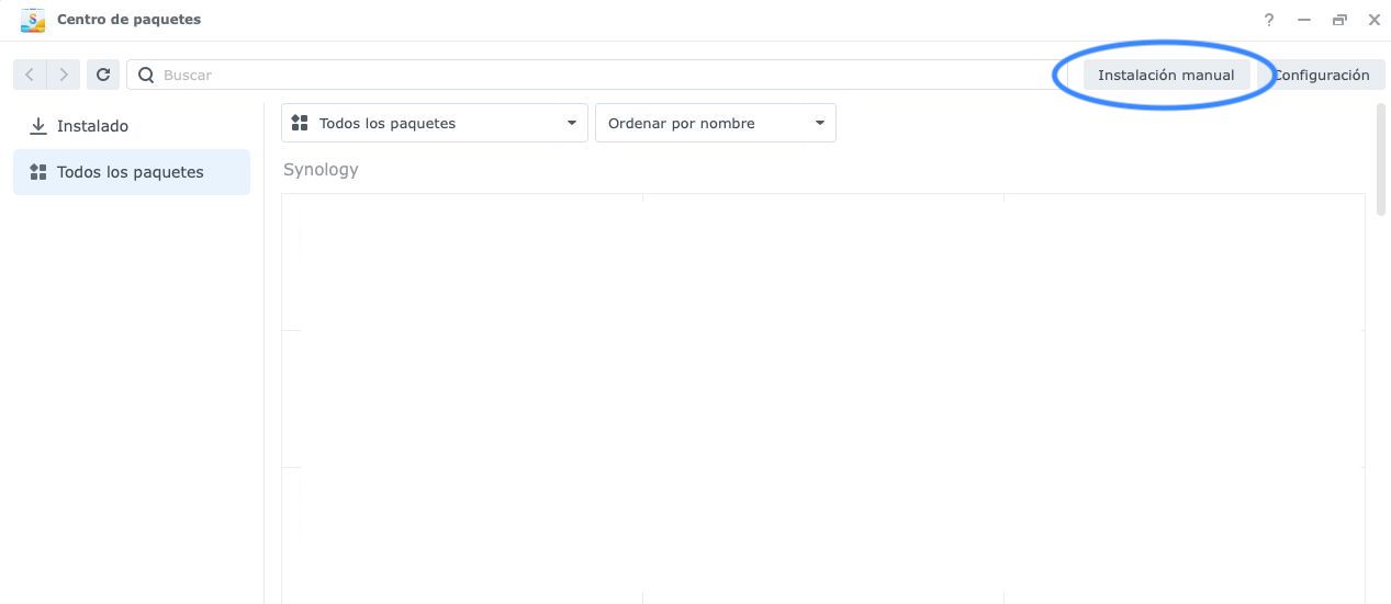3. Abrir el 'Centro de paquetes' de Synology y seleccionar 'Instalación manual':