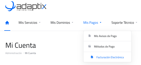 Paso 2. Ir al menú Mis Pagos y dar clic en la opción 'Facturación Electrónica':