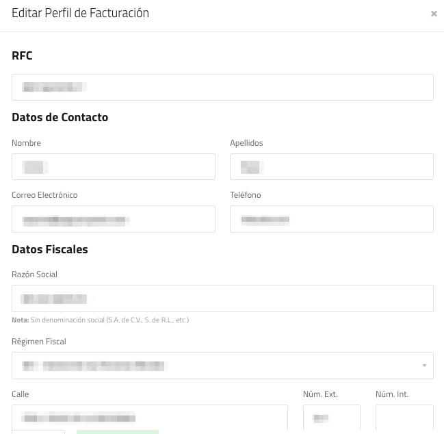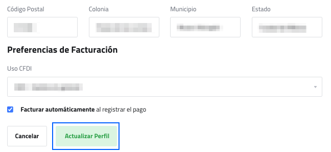 El Perfil de Facturación puede ser modificado cuando sea necesario.