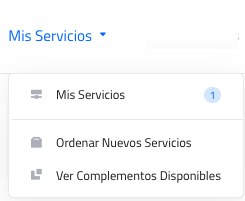 Al dar clic en Mis Servicios, aparece un submenú con las opciones Mis Servicios, Ordenar Nuevos Servicios y Ver Complementos Disponibles: