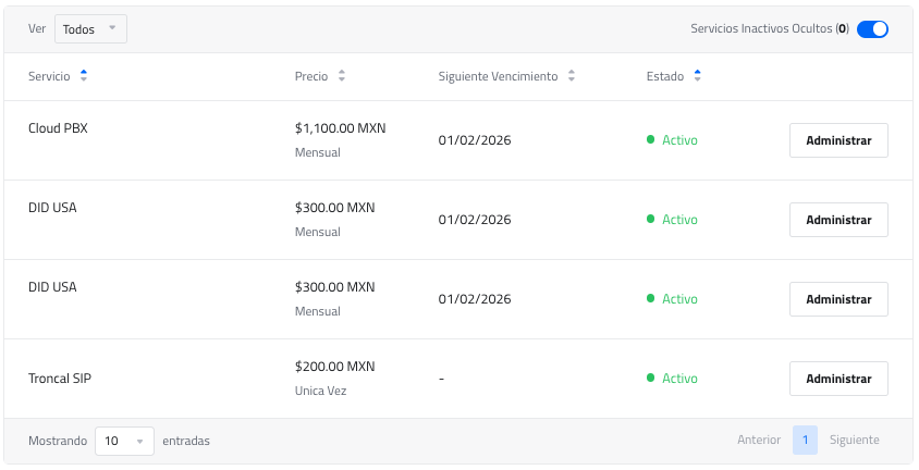 En Mis Servicios se obtendrá información similar a esta: