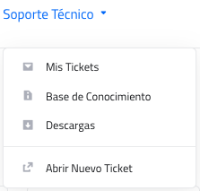 Soporte Técnico, del lado izquierdo de la pantalla se encontrarán las opciones Mis Tickets, Base de Conocimiento, Descargas y Abrir Nuevo Ticket: