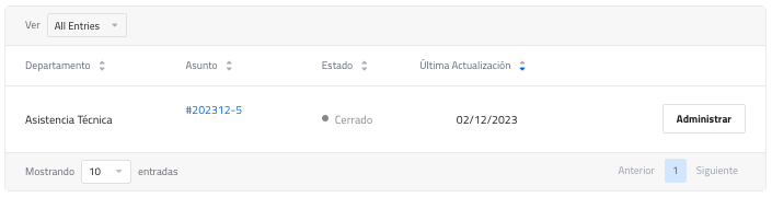 Al dar clic en Mis Tickets se obtiene el historial de tickets generados: