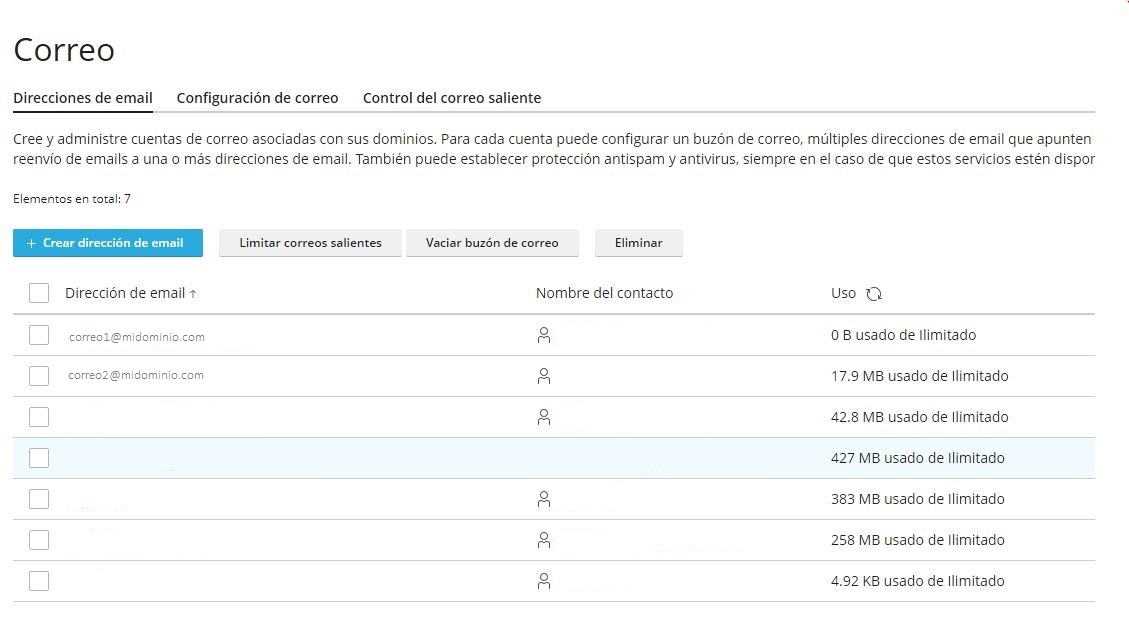 -Correo, le permitirá crear y administrar las cuentas de correo asociadas a sus dominios:
