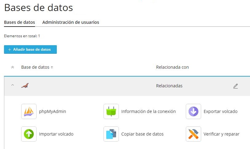 -En Bases de datos, se pueden crear nuevas bases de datos o administrar las existentes: