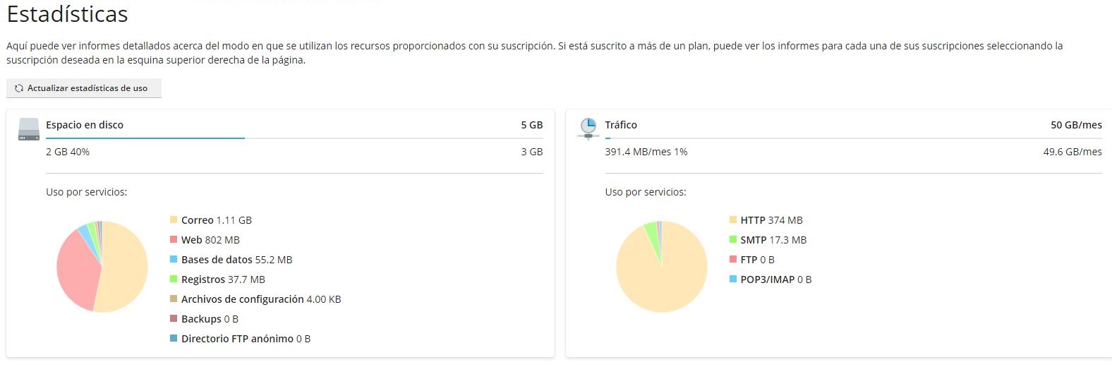 -En Estadísticas se podrán obtener informes detallados del uso de los recursos: