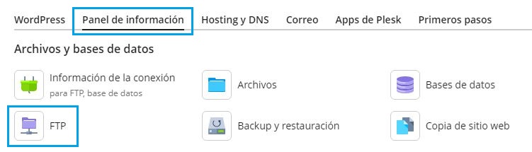 3. Dar clic sobre la pestaña Panel de información->FTP: